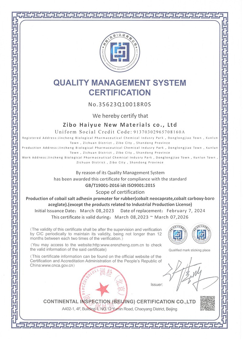 新癸酸鈷、硼?;?、橡膠鈷鹽粘合劑找:淄博海岳新材料有限公司